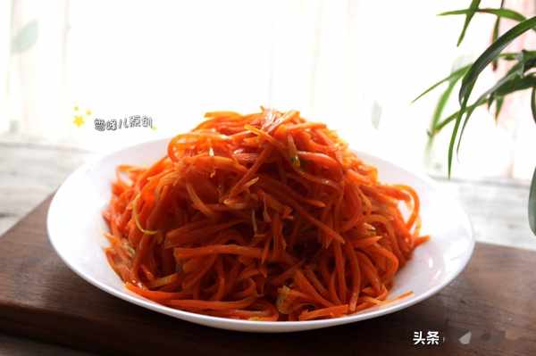 清炒胡蘿蔔絲:1,胡蘿蔔切絲,葱切絲。2,鍋裏放入花生油,放入葱絲爆香,倒入胡蘿蔔絲煸炒均勻。3,加鹽調味,稍微加一點水炒熟,出鍋即成。