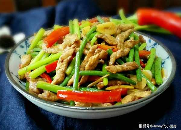 最後倒入肉絲,加入少許生抽、雞精,快速翻炒均勻,這道菜就做好瞭。