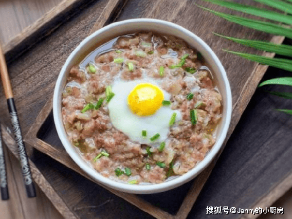 接著給肉末中間打入雞蛋,一個或者多個都可以。或者不想吃荷包蛋,可以打成蛋液,加適量清水攪拌均勻,倒進肉末中,蒸出來就是雞蛋羹的口感。