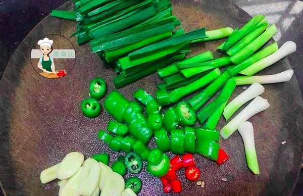 食材:新鮮的河蝦、蒜苗、小米辣、大蒜、杭椒少許。