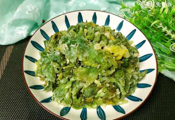 (6)最後一步把料汁和蒸好的菜葉混合,攪開攪勻,裝盤即可食用