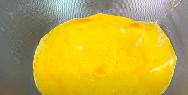 第2步、接著準備4到5個雞蛋打入碗中,然後放入少許的胡椒粉去腥和一點點的水淀粉,攪拌成雞蛋液,這樣做的雞蛋液煎出來的雞蛋韌不易碎。然後準備一個不粘鍋,鍋中不用放油,鍋熱後,舀入雞蛋液,慢慢的將雞蛋液攤平,底部凝固後,輕輕的吹起另一面煎10秒左右就可以瞭,剩下的雞蛋液也是如此。