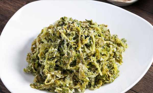 材料:茼蒿、面粉、玉米面粉、鹽、雞精、生抽、醋、辣椒油、香油、蒜蓉