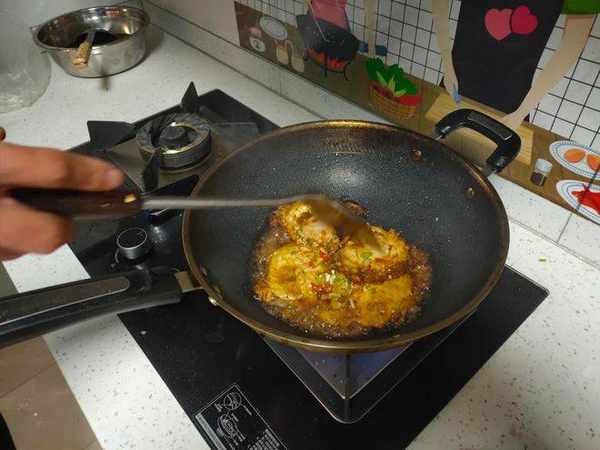 6.接著將調好的料汁下鍋,火開大一點,燒開收一下汁;