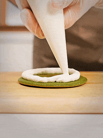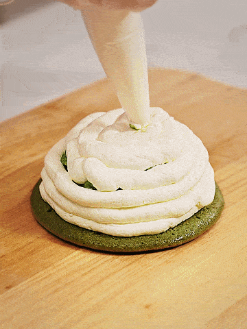 奶油持續往上擠入後,封頂,用小刮刀輕輕的抹成一個小山的樣子,蓋上另一塊餅皮,輕壓至平就可以啦!