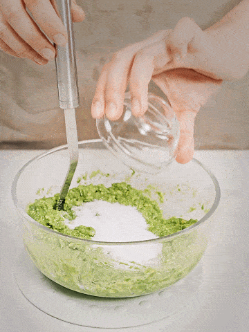 加入40g砂糖翻拌均勻,最後加入留出的牛油果塊,拌入其中,做出有顆粒口感也有細膩綿軟的牛油果醬