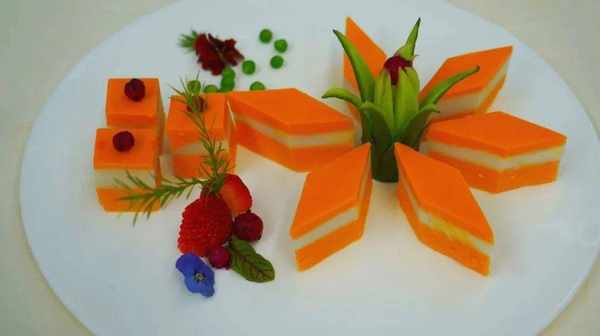“ 參加這次美食比賽,我的作品南瓜慕斯有幸獲得涼菜第一名。這道菜的食材運用瞭洛南的南瓜和山藥,通過蒸、烘焙、冷藏等工序制作而成,具有濃厚的地方特色。廚藝永無止境,此次比賽中,我與同行深入交流,切磋學習,不斷提升烹飪技藝,希望將來能夠把洛南美食宣傳出去,讓更多的遊客來洛南賞美景、品美食。”夏都酒店廚師長王磊高興地說。