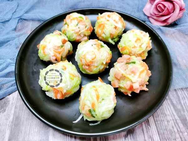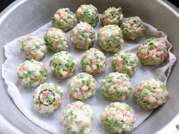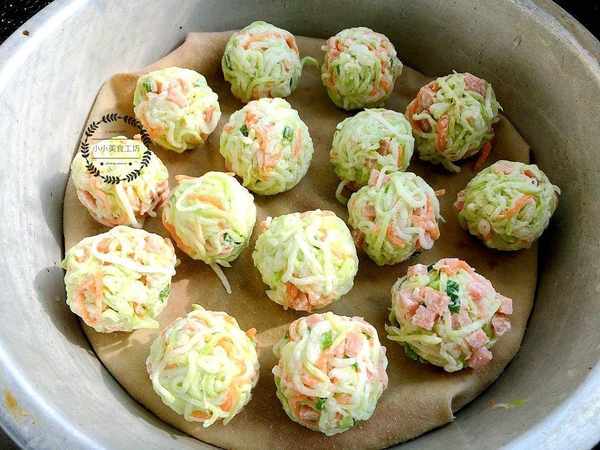3、最後用手團成丸子的形狀,放入蒸屜大火蒸制15分鐘左右即可。