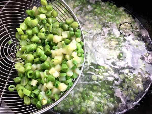 1、豆角和土豆去皮後切成小丁,然後依次放入熱水中焯燙片刻後撈出。