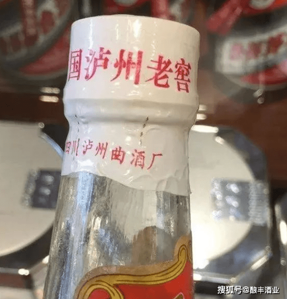 除瞭封膜外,封口膠套也是鑒別的一個要素。以瀘州老窖特曲酒為例,從88年開始真酒在瓶蓋封口膠套上印有“瀘州曲酒廠”的字樣。金屬蓋上印有“瀘州曲酒廠釀制”的字樣。而七十到八十年代中期之前的老酒封口處則很少出現廠名或者字體。