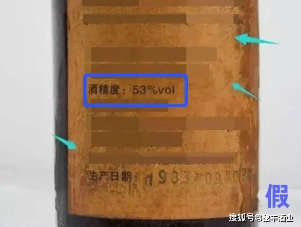 如下圖,瓶身標註的是1983年的老酒,但酒精度標識方式已經暴露瞭“偽造”身份。“%vol”是現代標識方式,茅臺酒使用的比較早,九十年代就開始有使用,而大部分酒廠2000年以後才可以推廣開來,上世紀80年代常用的是“V/V”酒精度標識。(出口的老酒除外)