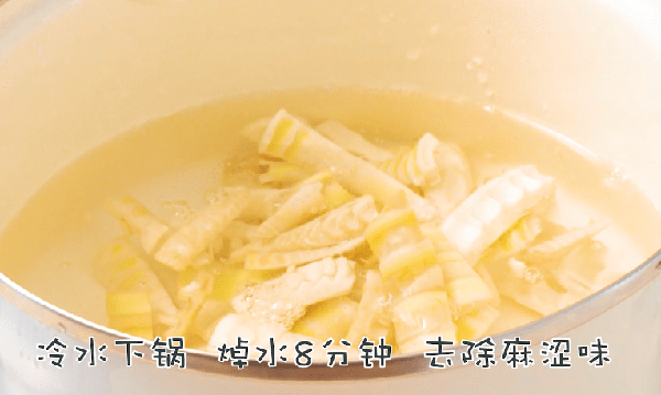 2、冷水下鍋,焯水8分鐘去除澀味;