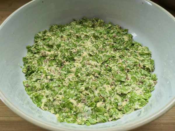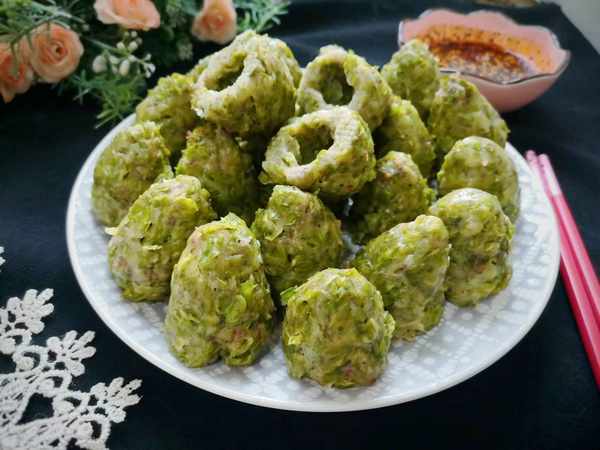 5、然後抓起一把榆錢,團成圓形,大小隨意,再做成窩窩頭的形狀。