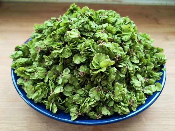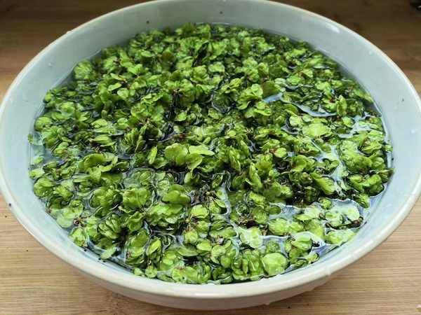 2、從榆錢中挑出多餘的雜質,清洗幹凈,清洗時要細心耐心,我怕可能有蟲子,一定要多洗幾遍,也可以用淡鹽水浸泡後再清洗,然後瀝水分。