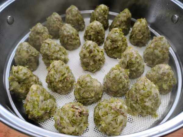 7、上汽大火蒸15分鐘即可,蒸好的榆錢窩頭,散發著清甜的氣息,出鍋後晾一會吃起來勁道。