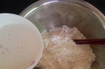 然後我們來處理食材:將白砂糖、酵母放在適量的溫水中,順著一個方向攪拌成沒有顆粒的樣子,然後靜置5分鐘左右,面粉、食用鹽和小蘇打混合均勻後,少量多次的倒入發酵好的酵母水,邊倒邊攪拌,直到面粉成為面絮,我們就可以把它揉成光滑的面團,在這裡如果發酵的水不夠,我們要繼續添加溫水,千萬不要用冷水,一般情況下,溫水的溫度在40度左右,這樣能夠促進酵母發酵。