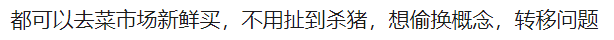 有贊同自然也有反對的。有人反嗆客服是在“偷換概念”:“誰要你們殺豬瞭?絞個新鮮肉餡不行?皮要你們現場搟瞭?”“都可以去菜市場新鮮買,不用扯到殺豬”。
