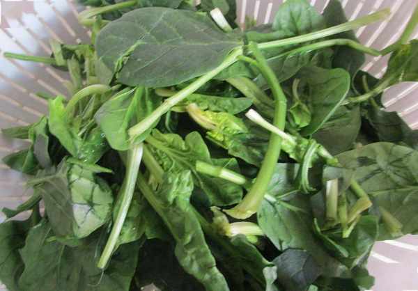 所用資料:菠菜1把,麵粉半杯,葱末少許,鹽適量,花生油半勺。