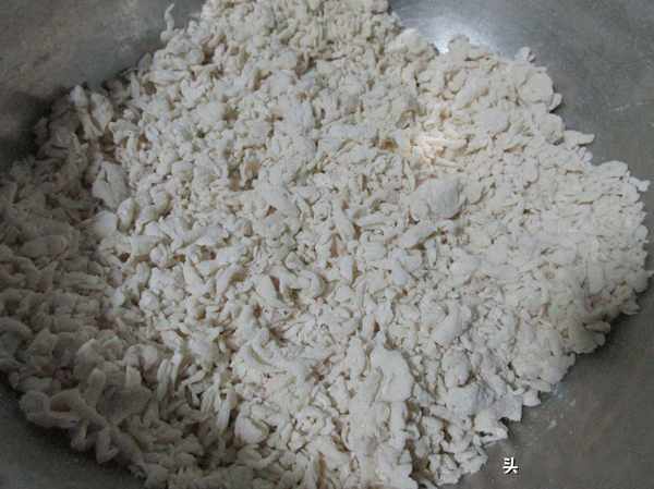 第四步:麵粉放入盆裏,撒入少許水,用筷子攪拌成小面疙瘩,即成。如果想要面疙瘩一粒粒的很筋道,用蛋液攪拌成面疙瘩,就是煮開了,也很筋道。