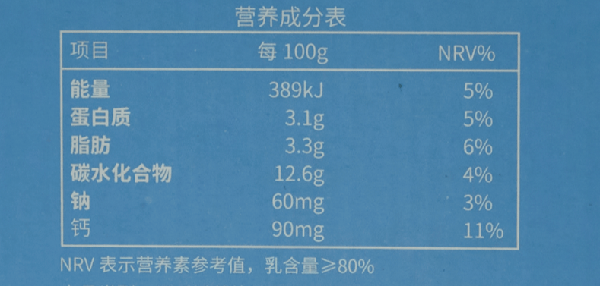 它的蛋白質含量達到瞭3.1g/100g ,鈣含量也達到瞭90mg/100g,是實打實的優秀酸奶~