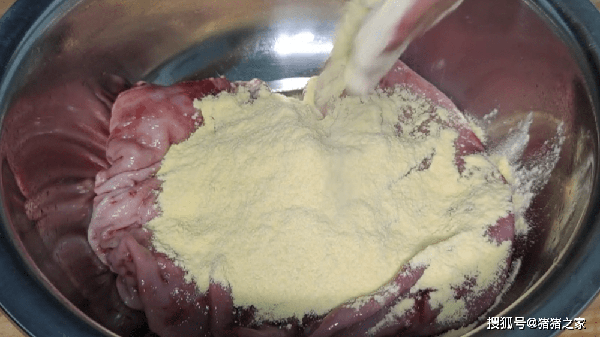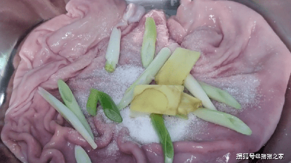 1.清洗豬肚,買回來的豬肚上面有非常多的血水和粘液,把豬肚放入盆中,加入一把玉米面,切記是玉米面,不是玉米淀粉,然後來回的揉搓,一面一面地搓洗幹凈,隻需要一兩分鐘就可以完全的搓幹凈。正面清洗幹凈後,再翻另一面清洗。