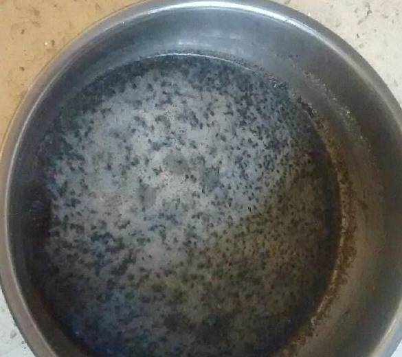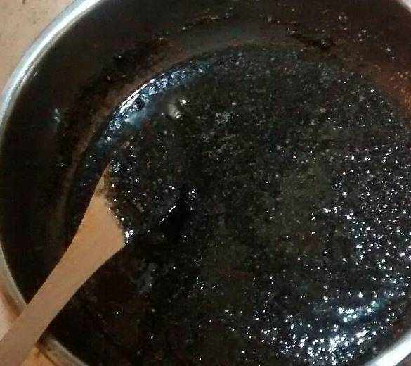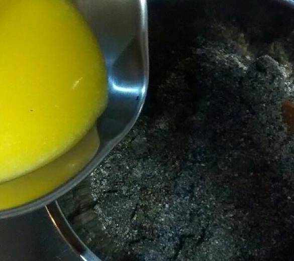 全部融化就可以,不要太熱,倒入黑芝麻粉裡。