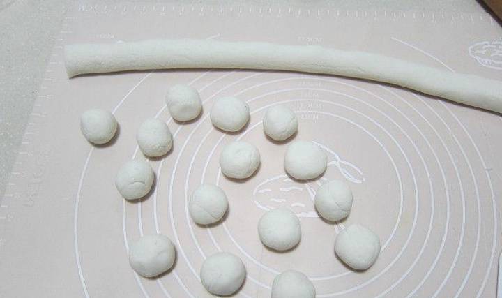 將揉好的面團搓成長條,分割成30克/個,再搓成一個圓球。