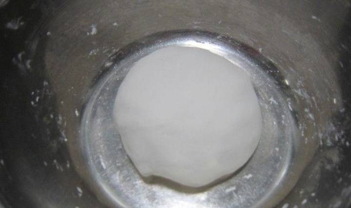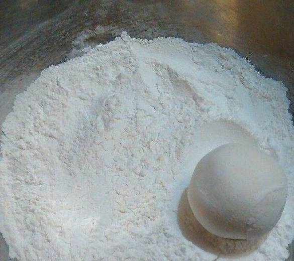 放到幹糯米粉裡裹上一層幹粉。