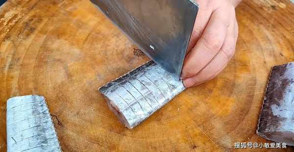 1、鮁魚一定將貼骨血和腹部的黑膜清洗幹凈,不然腥味特別的重。清洗幹凈的鮁魚兩面改成一字刀,另一面也改成一字刀,這樣更容易入味兒。