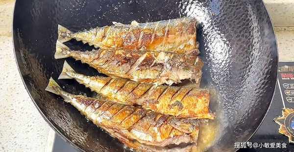 2、鍋中油熱,放入鮁魚,先不要動,煎至一面金黃以後,翻過來煎另一面,另一面也煎至金黃定型以後,控掉鍋中多餘的油,不要這個油特別的腥。