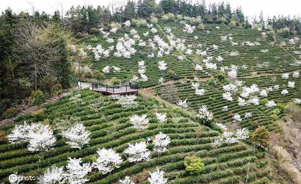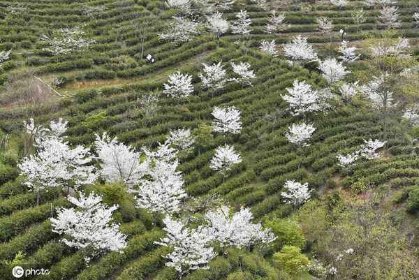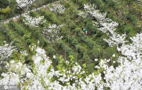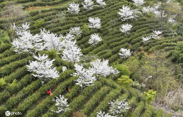 太平鎮“大客天下”的茶園裡,櫻花迎風盛放,伴隨著茶園的清香,漫山櫻花觸手可及。櫻花樹下,采茶人脖子上戴著佈袋子在茶壟之間來回穿梭。“明前茶采摘主要是采摘一葉一芽,這樣才能保證茶葉的品質。”