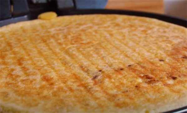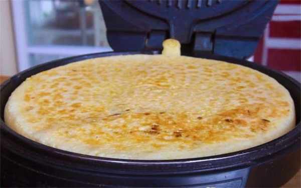 3.電餅鐺預熱刷一層油,把這個面糊直接倒裡面烙就行瞭,記得蓋上蓋子上下層一起烙。