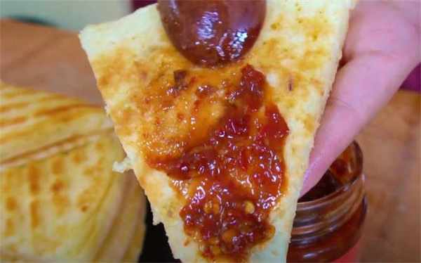 6.看看這個發面餅,真的是特別的柔軟,做起來一點難度也沒有,抹點辣椒醬上去,味道肯定好,喜歡吃烙餅的朋友,真的可以試試這個餅的做法,這個餅外面脆,裡面又非常嫩而且柔軟,吃起來的味道真的是太棒瞭。
