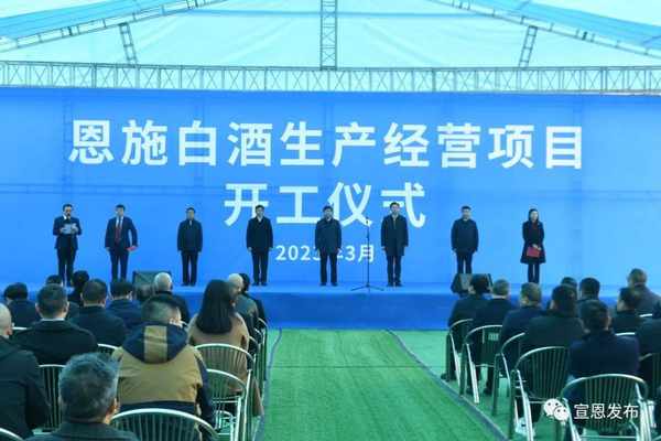 (《企業與市場》網訊 轉載:恩施發佈 編輯:林章羽 校對:於露露 簽發:陽平 賀敏 編選人:餘水行 王小英 實習生:王子君 孫青秀 譚思佳)仙山貢水有佳釀,恩施白酒賦新機。3月27日,恩施白酒生產經營項目開工儀式在宣恩縣珠山鎮玉龍社區舉行。州委書記胡超文出席開工儀式並宣佈開工,州委副書記、州長夏錫璠致辭,州領導吳建清、 單艷平、許強出席開工儀式,縣委書記習覃致歡迎辭。