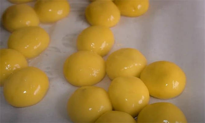 2.把這個湯圓稍微的放涼一會兒,然後放在冰箱最冷的那一層,凍上30分鐘。
