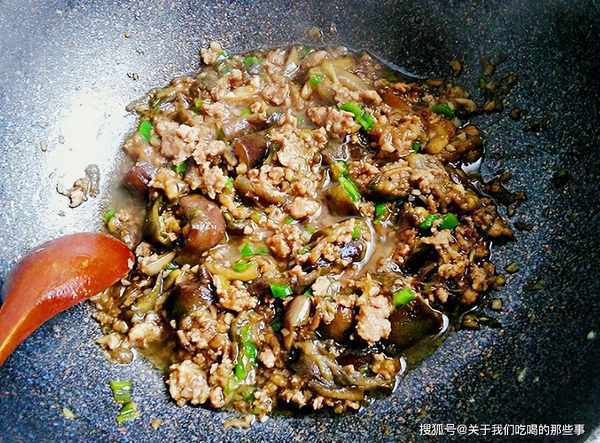 2、鍋裡倒入適量食用油,燒熱後放入蒜末、蔥花爆香,倒入豬肉末小火煸炒,顏色金黃後淋入料酒翻炒去腥,加適量生抽上色。