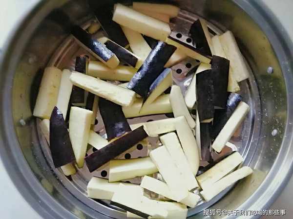 1、茄子洗幹凈不去皮,切成長條,放進蒸鍋裡蒸10分鐘,取出備用。蔥切成蔥花,蒜切蒜末,青辣椒切小丁。豬肉洗幹凈後切肉末。