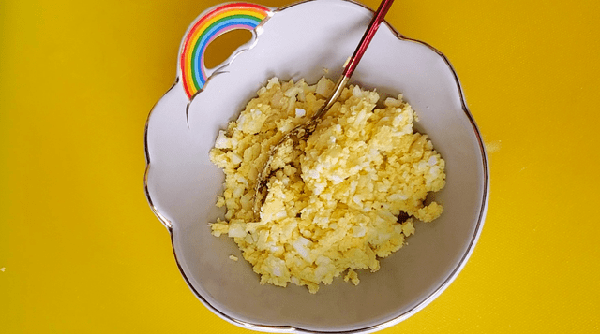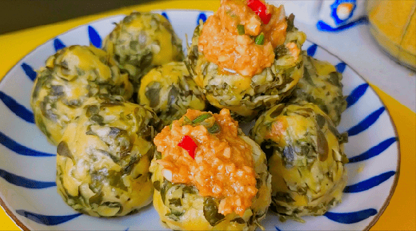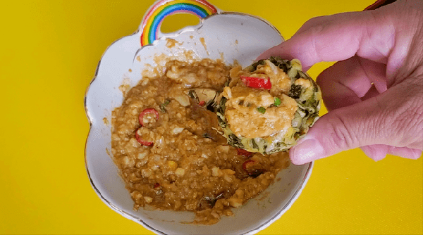 6、蒜臼子裡加入少許的鹽,放進去皮洗凈的大蒜,搗成蒜泥,放進去皮的雞蛋搗成泥,調味蒸魚豉油,小磨香油,蠔油,雞精,小米辣,小蔥花攪拌均勻,美味的雞蛋蒜蓉醬就做好啦!做好的雞蛋蒜泥醬放進窩窩頭的窩窩裡面,香辣爽口,開胃下飯,一口一個實在是比吃肉包子還香呀!簡直是太好吃啦!