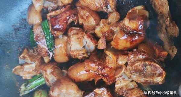 然後將豬蹄放入鍋中,加水、薑、灰、蒜燒開,水燒開後撈出,用熱水洗凈瀝幹,即可撈起。醬油,鍋裡放油,適量加入冰糖,將冰糖炒熟,再把壓碎的豬蹄倒入鍋裡炒勻,再放入花椒、桂皮、八角、薑。炒勻,加適量水。