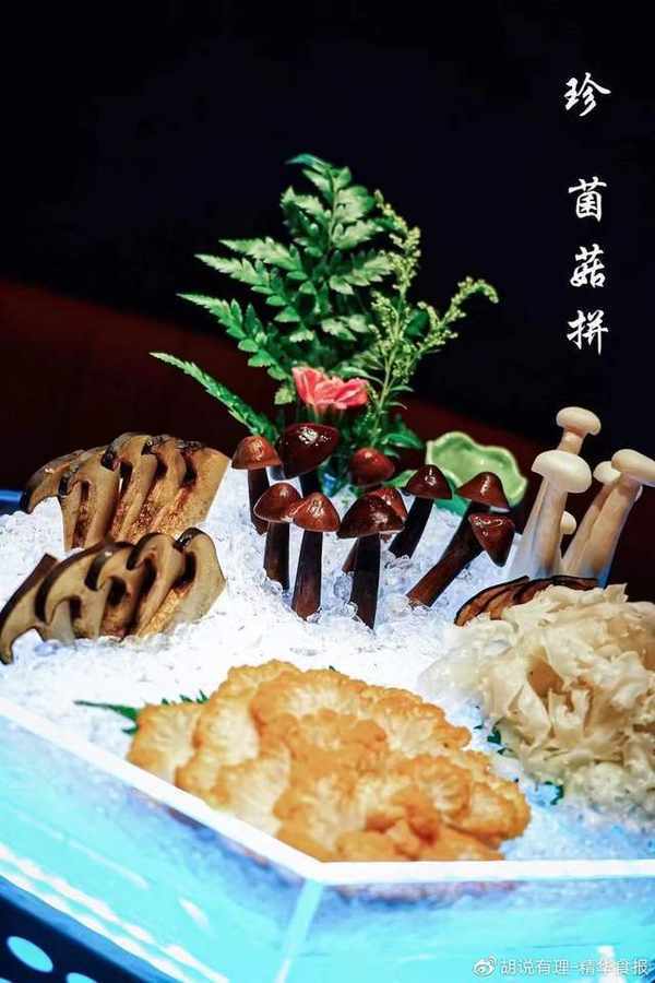 此外,升級版的菌湯鍋底,經長時間吊制,呈琥珀色,菌菇的香味非常濃,鮮美且不掩蓋食材的本味。用鮮的蘑菇,還有一點幹的蘑菇,以及每天從雲南空運過來新鮮的牛肝菌,鍋底保證每天都是現做的。所謂吊清湯,就是通過煮制新鮮的菌菇三個小時,將菌菇的香味全部煮出來,然後再加入雞茸去吊湯,越吊越清亮,味道卻濃厚,都是精華!