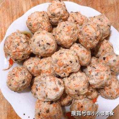 二、鍋燒開水,右手放油,抓一坨肉餡拿在手上,搟成小丸子放入熱水中煮熟,蓋上鍋蓋煮五分鐘分鐘。