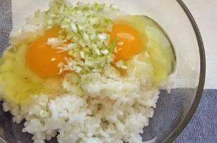 1.米飯的熱量比面食熱量低很多,這道主食適合減肥的小夥伴的,剩米飯中打兩顆雞蛋,加一點蔥花調味,攪拌均勻讓米飯充分吸收蛋液,米飯會變得更軟和一點。