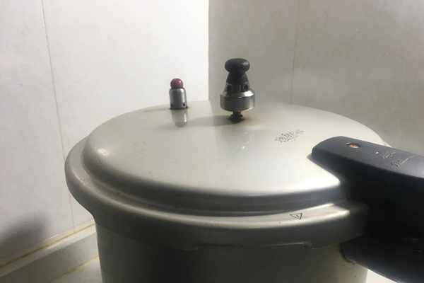 4、高壓鍋裡倒入適量清水,放入處理好的肉皮,按照2:1的比例加入清水。