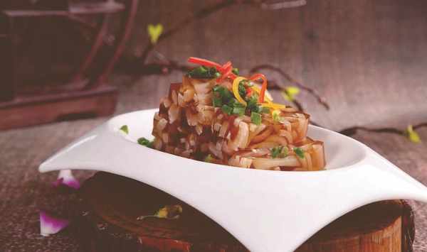 豬皮凍因為膠原蛋白比較豐富,口感又Q彈爽滑,所以成為老百姓飯桌上的常菜,在節日的餐桌上更是必不可少的一道涼菜。豬皮凍一般有兩種形式,一種是無色的澄明清凍;一種是醬油色的渾凍,各有所長。北方人通常喜歡色重味濃,所以渾凍更符合一些北方人的口味。