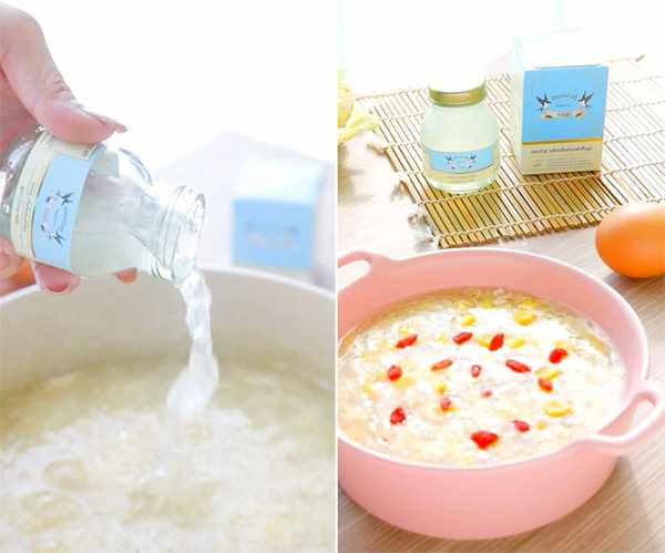 記得小時候看港劇,劇中人動不動就說“給你煲糖水喝”或者“給你下碗面吃”,當時就覺得港人吃得不太好呀,成天吃面喝白糖水……當然啦,今天大傢都知道此糖水非彼糖水,而是用各種食材精心煲成的甜湯,煲糖水之風也從潮粵地區傳播到瞭全國各地。糖水的種類很多,比如楊枝甘露、紅豆沙綠豆沙、芝麻糊核桃糊、番薯甜湯、蓮子百合、冰糖雪梨等等,不勝枚舉。小編今天推薦的馬蹄玉米燕窩羹即是港式糖水與雙蓮即食燕窩結合而成的一道美味又補身的傢常甜品。