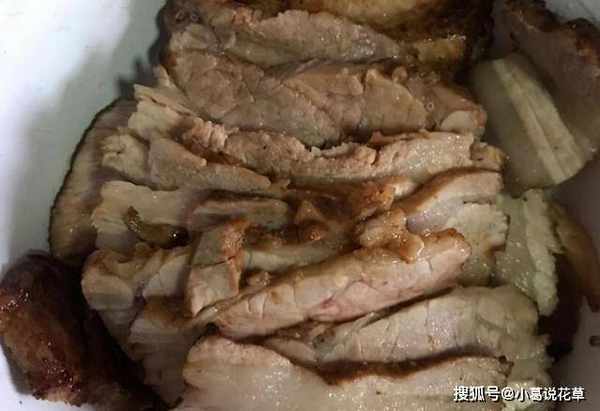然後,用牙簽在豬肉的頂部劃出小孔,這樣更入味。接下來就是醃制,取一個碗,將黑醬、料酒、蠔油和糖放入其中,拌勻後澆在煮熟的五花肉上,盡量多嘗味道盡可能讓五花肉浸泡一會兒。
