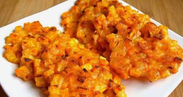 第三道美食是紅薯煎餅,做法簡單,非常適合招待朋友。先將紅薯切塊,然後放入碗中,加入面粉和雞蛋拌勻,鍋中放油,將裹好面粉的紅薯倒入油鍋中,將紅薯餅一個個煎一下一。味道也不錯,香甜可口,做法也比較簡單。