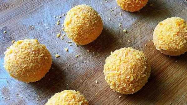 然後把揉好的面團分成很多小面團,一個一個揉成紅薯球。紅薯球做好後,可以準備一些面包屑或者椰絲,然後撒在紅薯球上,這樣紅薯球就被包裹住瞭。可以根據自己的口味決定面包屑或椰絲。如果喜歡吃甜一點的,可以在和面的時候在面團裡加一點糖。紅薯球做好後,就可以下油鍋炸瞭。金黃後取出,味道很好。