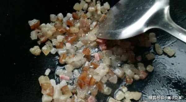接下來就是做餡瞭,做臘肉,臘肉剁碎,自制的咸菜剁碎,鍋裡加少許油,把切好的豬肉片放進鍋裡炸,然後醃菜剁碎炒。加入蒜瓣均勻出鍋。從烤箱裡出來後,釀培根應該很香,當然也很好吃。餡料和皮做好後,就可以準備清明糕點瞭。