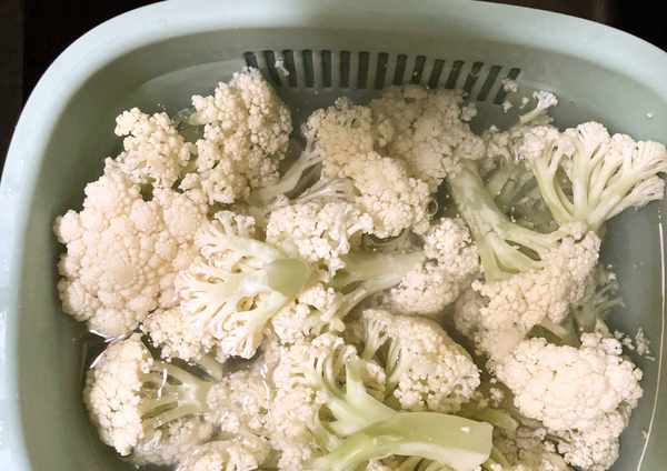 花菜跟西蘭花一樣,葉子都比較密集,所以清洗的時候不要直接用清水沖洗,這樣沒辦法將花菜裡面的灰塵雜質清洗幹凈。